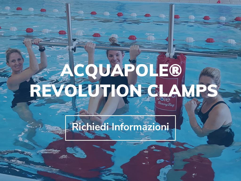 Scopri i corsi che puoi effettuare con le soluzioni acquatiche Acquapole®: Boxing Bag, T-Traction, Elastic Pole, Revolution Clamps. Sono tutti corsi certificati che forniscono un riconoscimento da parte delle maggiori associazioni acquatiche internazionali: AEA, Cimspa, Australia Fitness.